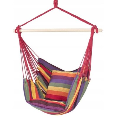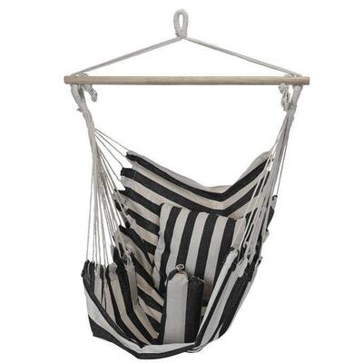Полосатое подвесное садовое кресло добавит цвета в любое пространство. Подвешенный на прочной деревянной стойке, он выдержит нагрузку до 160 кг(давайте проверим этот параметр перед покупкой). Сиденье изготовлено из устойчивых к разрывам и выцветанию материалов. В комплект входят 2 подушки для комфортного отдыха. Бразильское кресло можно быстро сложить и убрать.